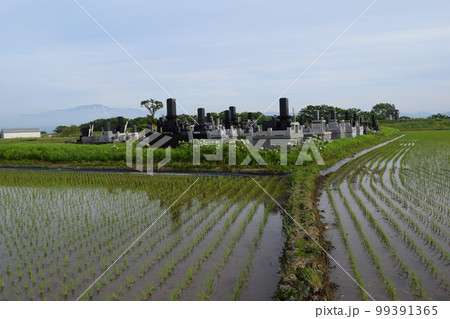 水田の中にある墓地