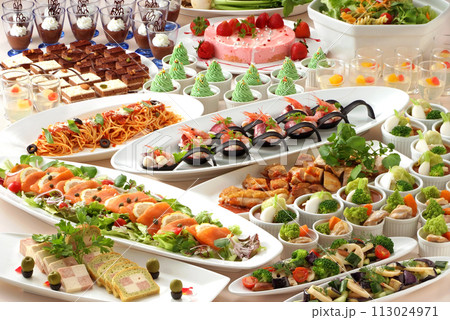 ずらりと並べられた沢山の料理・ビュッフェイメージ