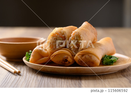Asian deep fried spring roll filling with cabbage, carrot and glass noodles