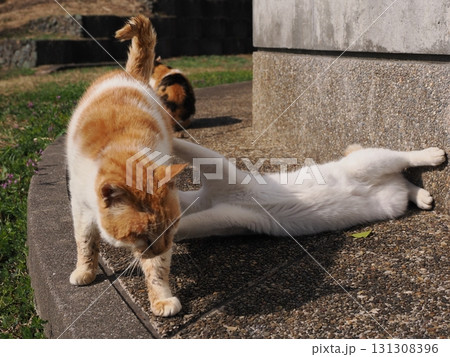 地域猫の家族 三毛猫姉さんと茶トラ弟が追っかけっこする
