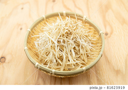ゴボウのささがき 盆ざるに盛った牛蒡のささがき