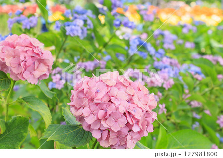 篠山玉水ゆり園 満開の紫陽花とユリの共演