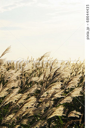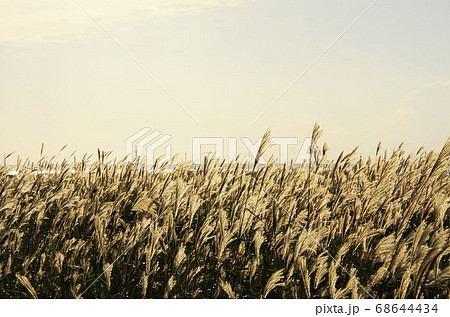 北海道 夕暮れの野付半島のススキ