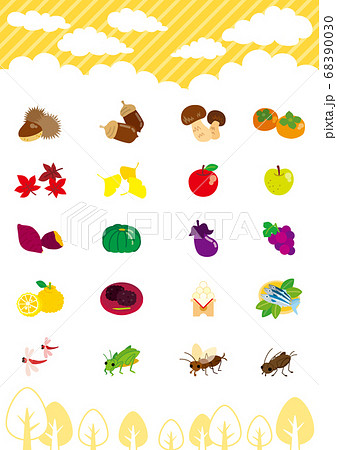 秋をモチーフにした可愛いアイコンのセット