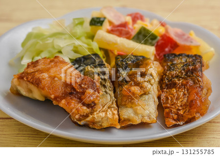 サバの竜田揚げ 家庭料理 茄子とシシトウ