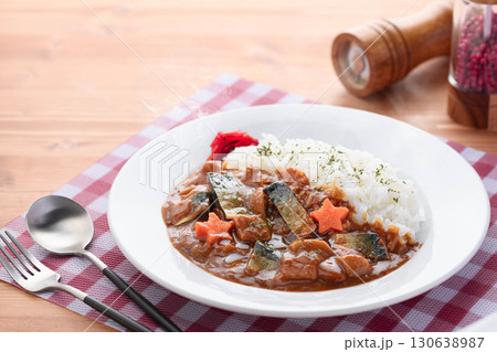 鯖ジャーキーを使った家庭風カレーライス 星型にんじんと福神漬けを添えた和洋折衷のアレンジレシピ