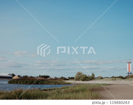 Metallic lighthouse near the Baltic sea