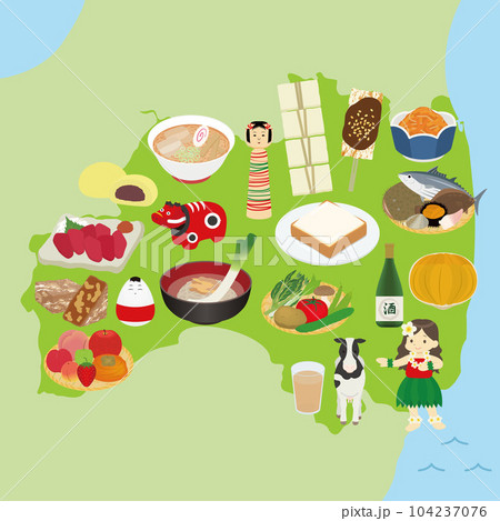 福島県の名物のイラストセット