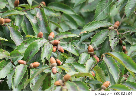 濃い茶色になりはじめたスダジイの実(秋、九月)