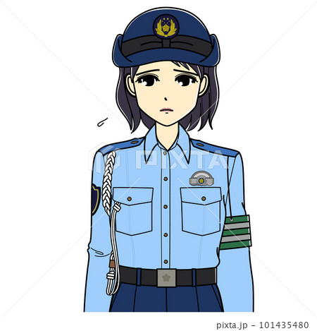 しょんぼりしている白ワイシャツの女性警察官(上半身)