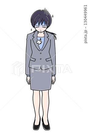 ため息をついて肩を落としているスーツのOLさん(シンプル・全身)