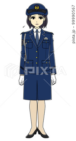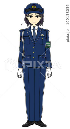 しょんぼりしている女性警察官(全身)