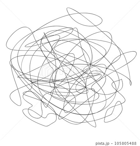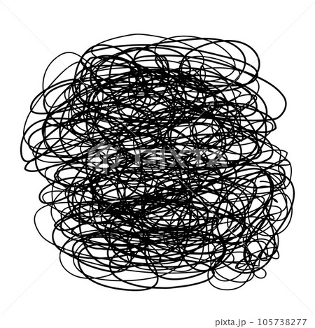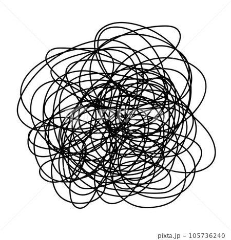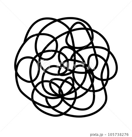ぐちゃぐちゃに絡まった線。モヤモヤ、イライラ、ストレス、憂鬱、生理、頭痛、悩みを表すアイコン。