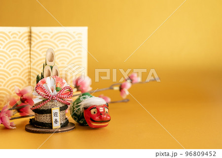 正月のシンプルフレーム(新年のオブジェクトと音符)