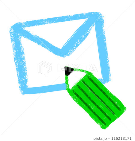 封筒と鉛筆のイラスト クレヨンタッチ