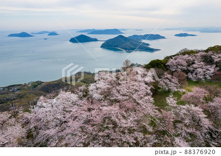 香川県三豊市の紫雲出山の桜と瀬戸内海