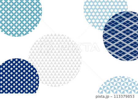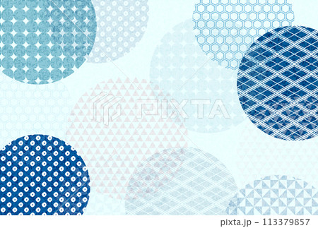 和柄背景|伝統模様 七宝模様 七宝柄 縦| 帯有り 青系