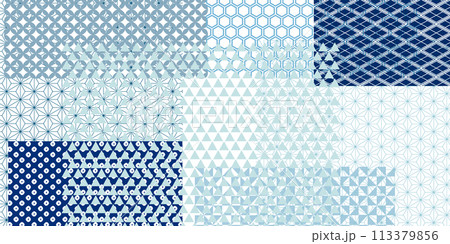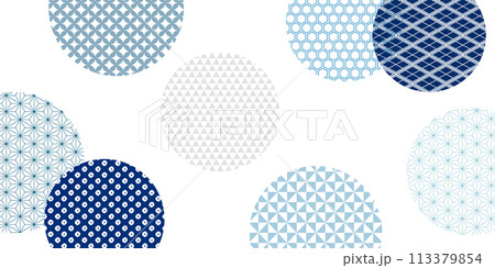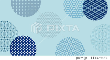 和柄背景|伝統模様 七宝模様 七宝柄 横| 帯有り 青系