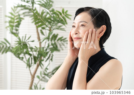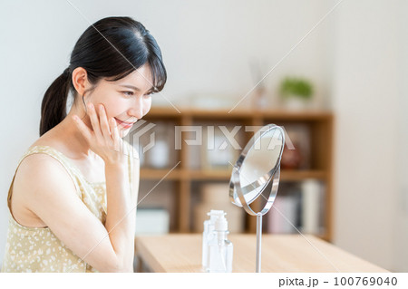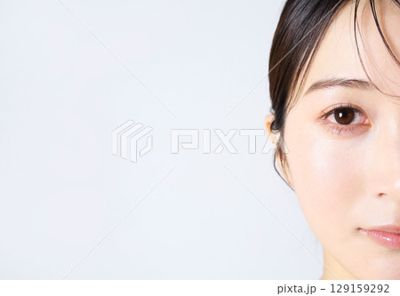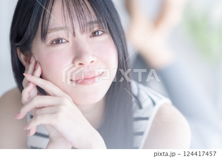 洗顔後の清潔感あふれる若い女性のアップ写真