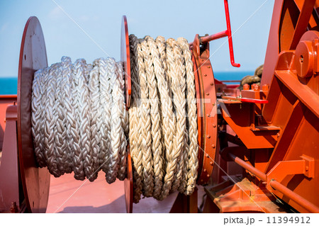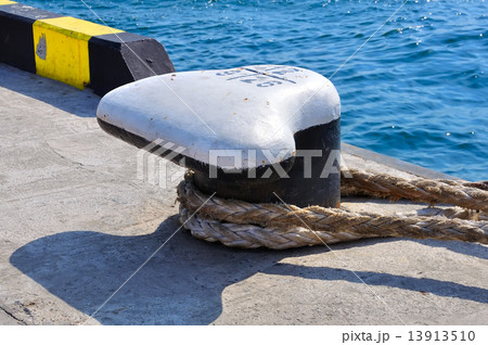Rope on a sea boat for mooring a vessel is adhered to a pier.