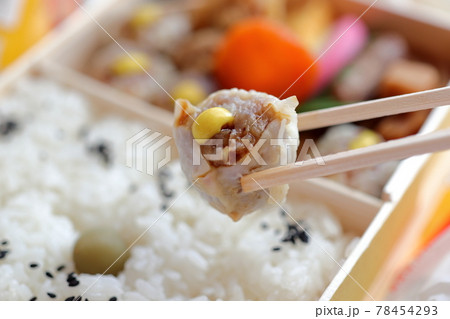 注)湯気は合成です。シューマイ、焼売、中華料理、蒸籠蒸し。
