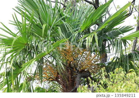 まだ青いシュロの実