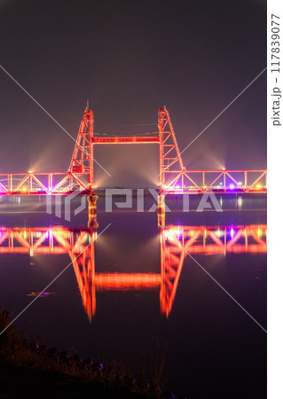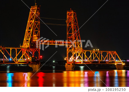 昇開橋ライトアップ風景 筑後川昇開橋(ちくごがわしょうかいきょう)佐賀市諸富「佐賀県と福岡県の県境」
