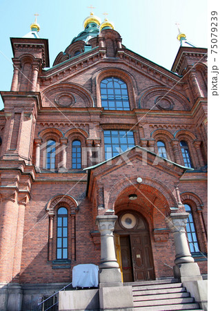 フィンランド ヘルシンキ カタヤノッカ に立つ ウスペンスキー大聖堂 縦位置