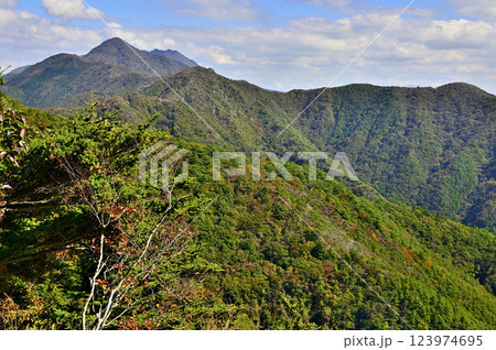 御坂山地の精進峠展望台から望む王岳と五湖山