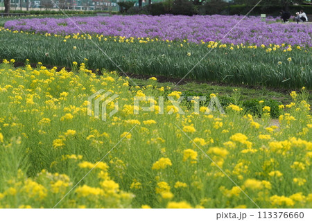 公園のムラサキハナナの花畑