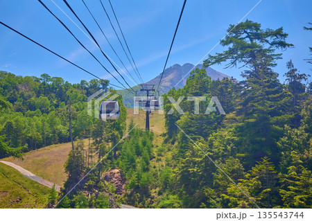 初夏の朝の群馬県利根郡片品村のロープウェイから日光白根山方面を見る