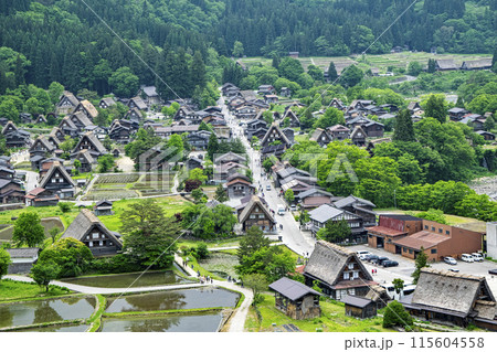 岐阜県 白川郷合掌造りの集落 水田風景 世界遺産