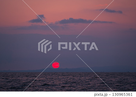 富山湾に沈む夕日をしんきろうロードから望む