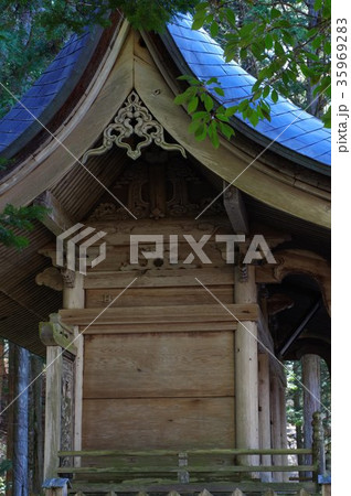 信州 木曽の文化財 熊野神社本殿 側面 立川流斉藤常吉の建造による本堂は町文化財指定
