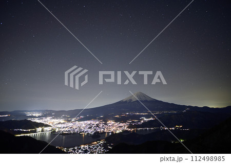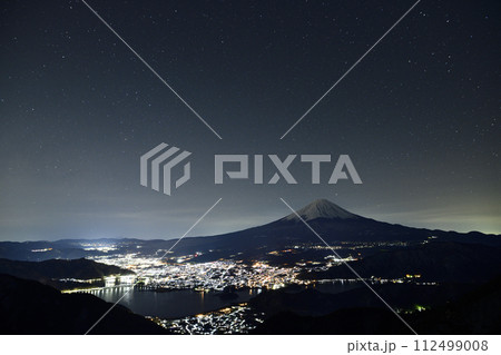 新道峠から望む夜景と富士山