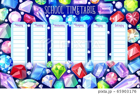 Weekly school timetable template with cute design elements. Weekday planner for kids. vector illustration