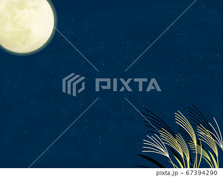 秋 十五夜 中秋の名月 お月見 ススキ うさぎ 団子 満月 フレーム 背景 コピースペース イラスト