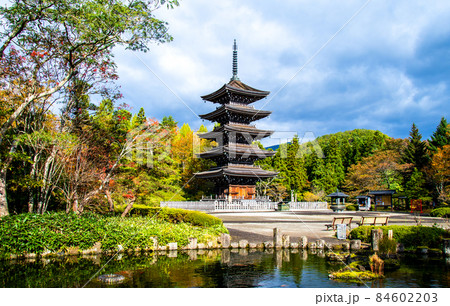 浄土宗極楽山西方寺 紅葉に囲まれた定義如来の五重塔