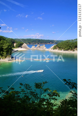 浄土ヶ浜 ざっぱ船からみる青の洞窟の美し水 岩手県宮古市