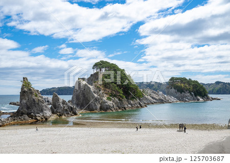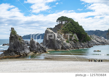 岩手県/ 春の浄土ヶ浜(浄土浜・浄土ケ浜)を歩く人