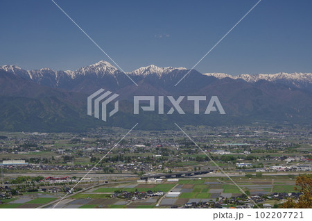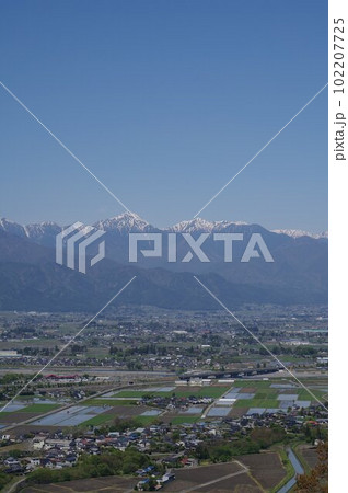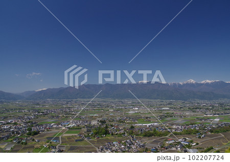 信州安曇野 北アルプス常念岳を望む 安曇野春景色