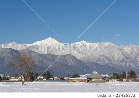 信州 冬の安曇野と北アルプス 常念岳を望む 安曇野冬景色