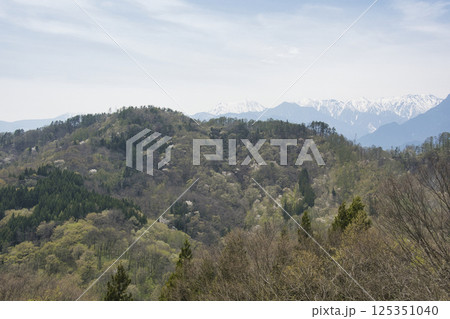 陸郷桜仙峡から見る残雪の北アルプス 長野県池田町
