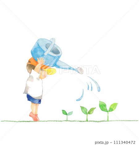 植物の芽にお水をあげているイラスト 水彩風加工バージョン