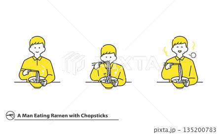 箸でラーメンを食べる男性 表情バリエーション セット 2色
