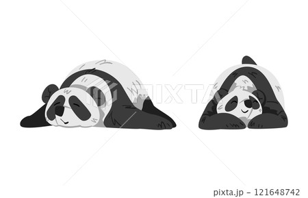 Cute lying pandas. Lovely wild animal cartoon vector illustration