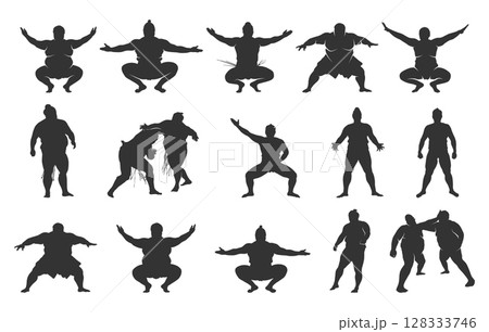 Sumo wrestler silhouette, Sumo wrestling silhouettes, Sumo wrestler svg, Sumo silhouette, Sumo SVG, Sumo athlete silhouette, Sumo wrestler icon set