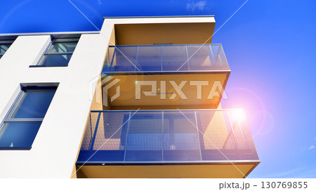 Modern elements in contemporary architecture. Architectural details of a modern apartment building.