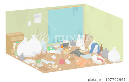 段ボール箱に入れた衣類とゴミ袋_部屋背景
