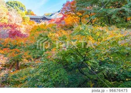 錦秋に京都市東福寺の臥雲橋から望む通天橋